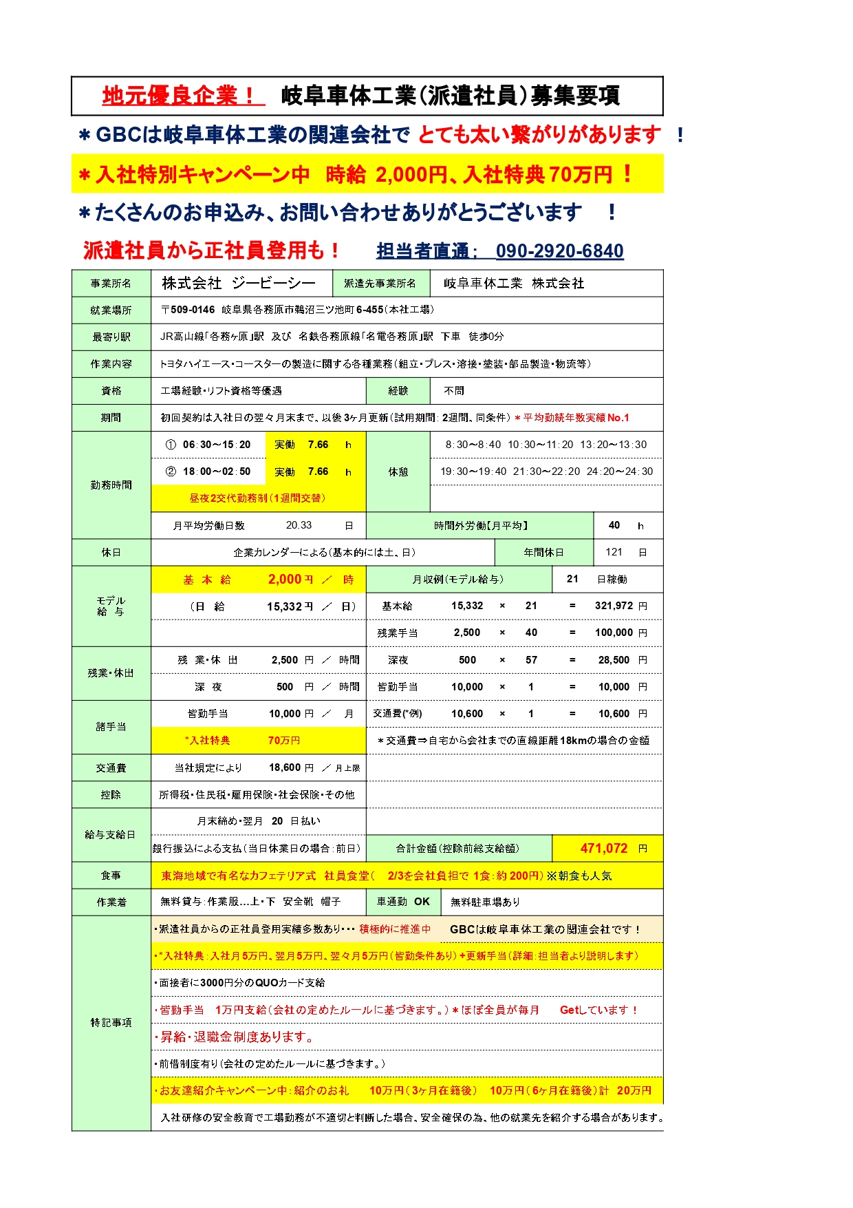 特別キャンペーンラストスパート! 岐阜車体工業募集要項 | 株式会社ジービーシー 岐阜県・愛知県のトヨタグループ製造人材派遣