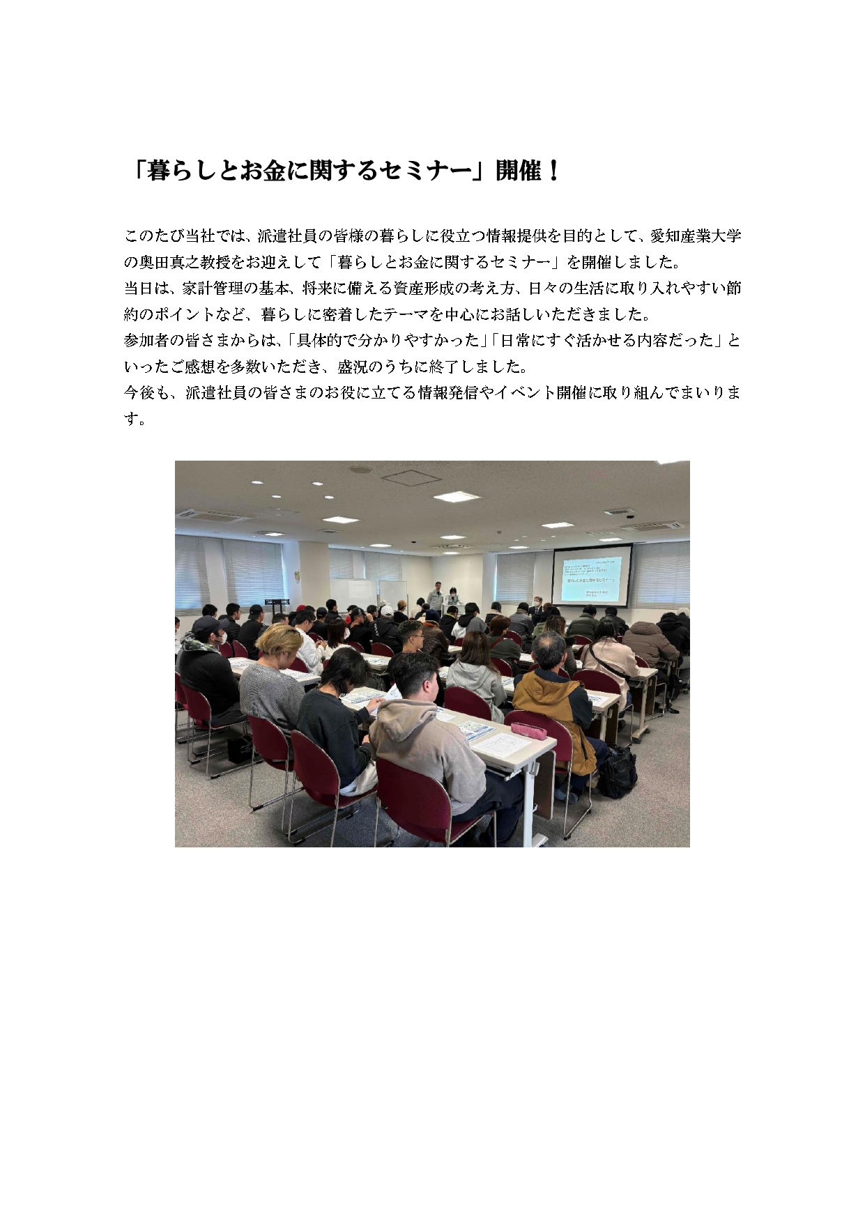 「暮らしとお金に関するセミナー」開催! | 株式会社ジービーシー 岐阜県・愛知県のトヨタグループ製造人材派遣