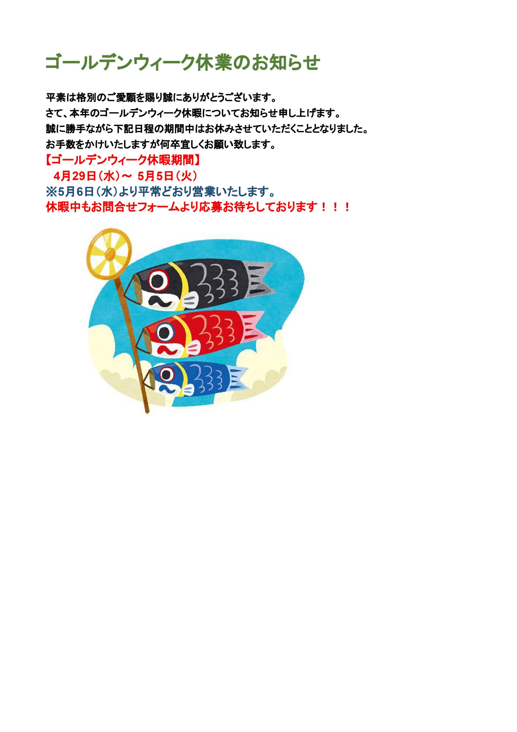 ゴールデンウィーク休業のお知らせ | 株式会社ジービーシー 岐阜県・愛知県のトヨタグループ製造人材派遣