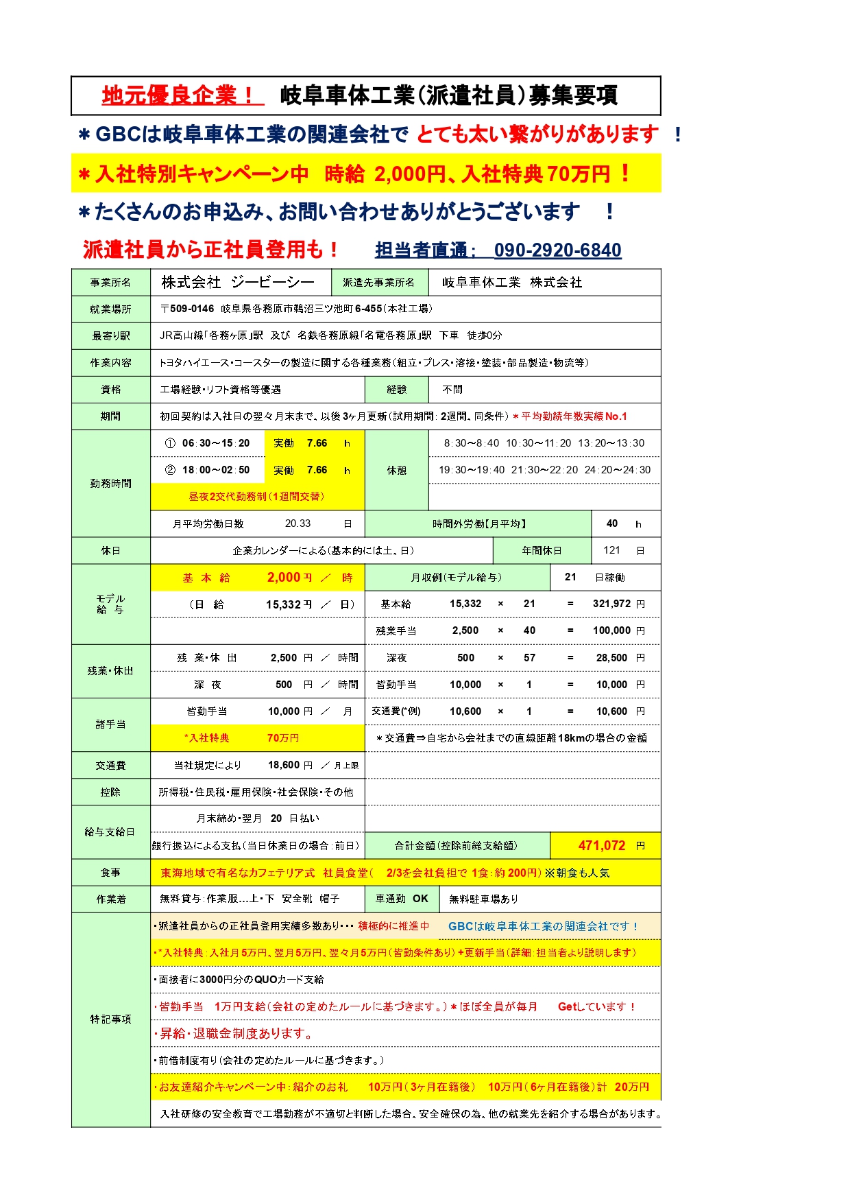 大人気!岐阜車体工業募集要領 | 株式会社ジービーシー 岐阜県・愛知県のトヨタグループ製造人材派遣
